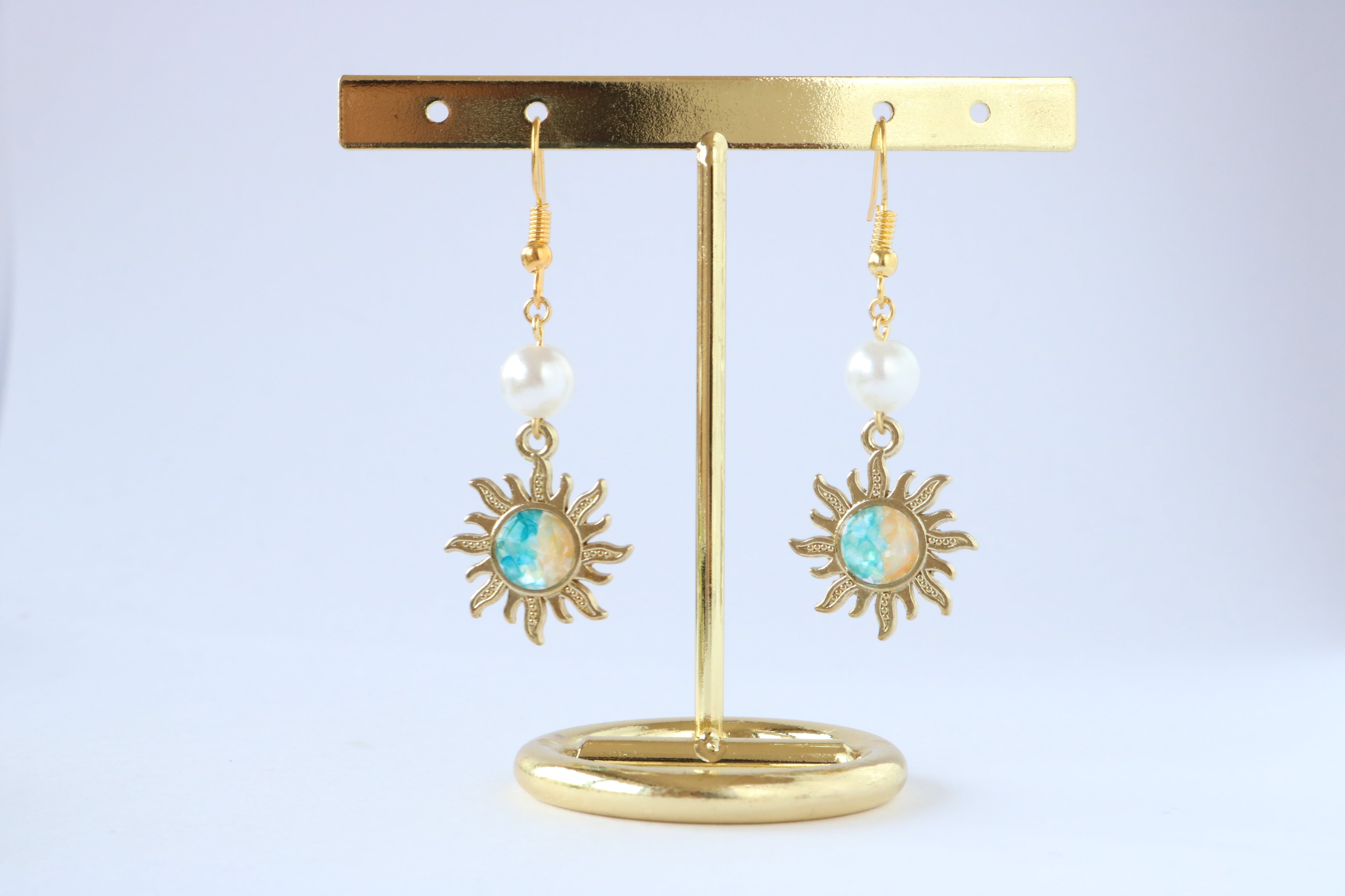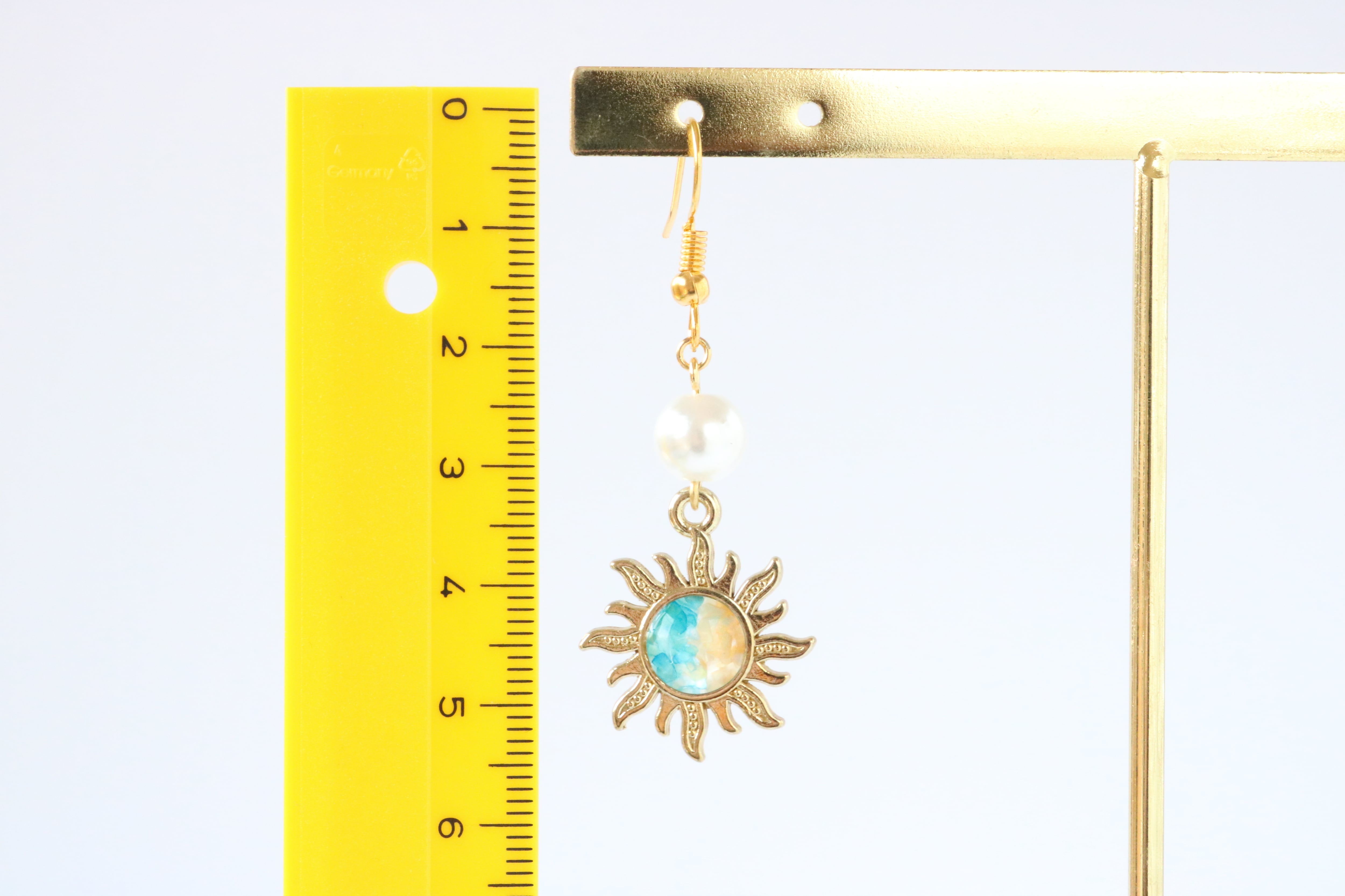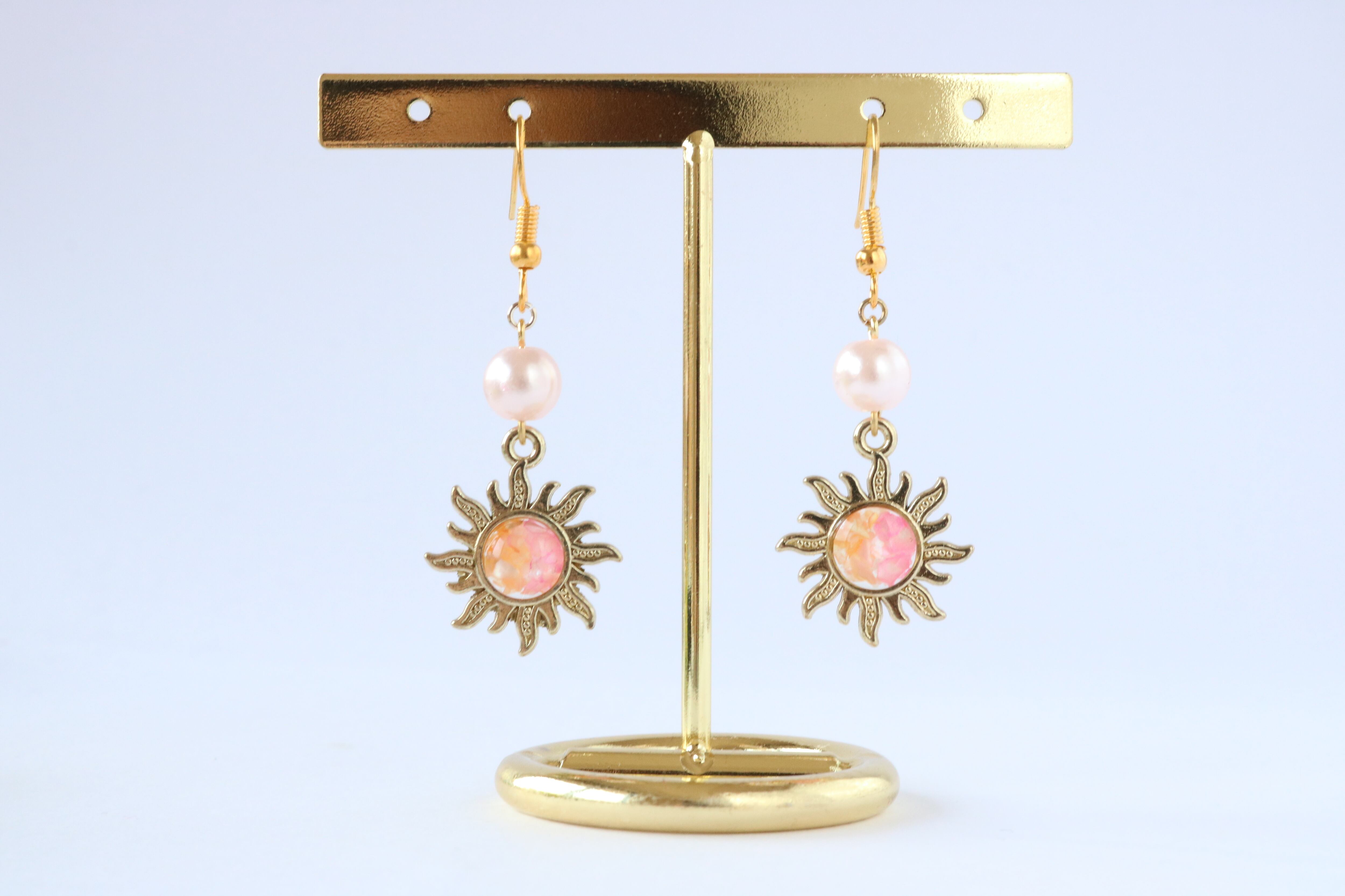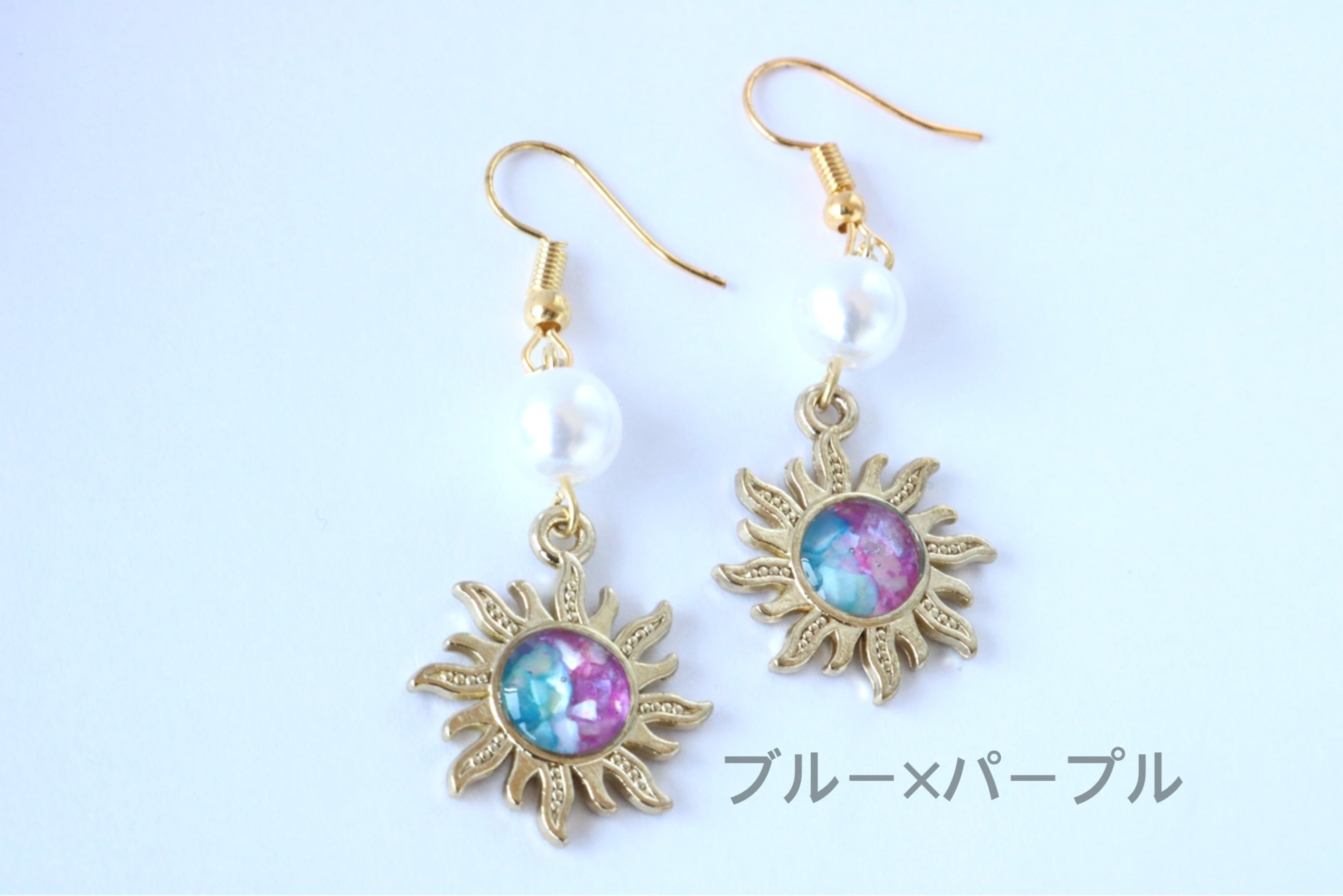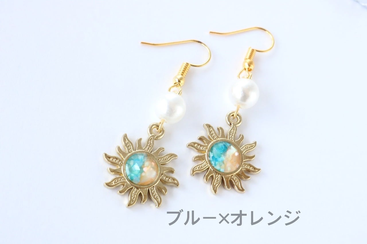 パステルカラーが際立つ太陽チャームに、シンプルなパールがアクセントになった大人可愛いゴールドピアスです。♪:*