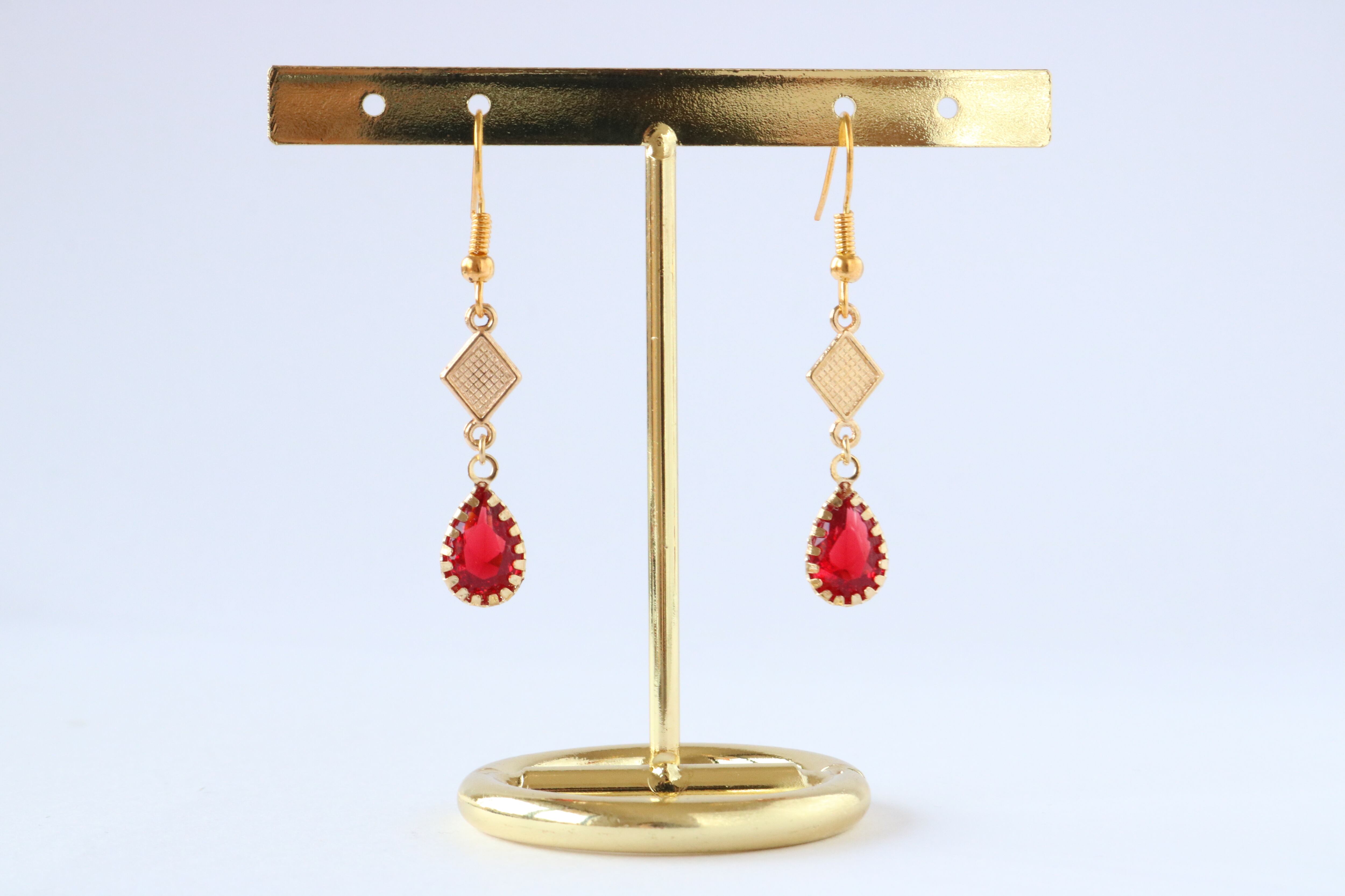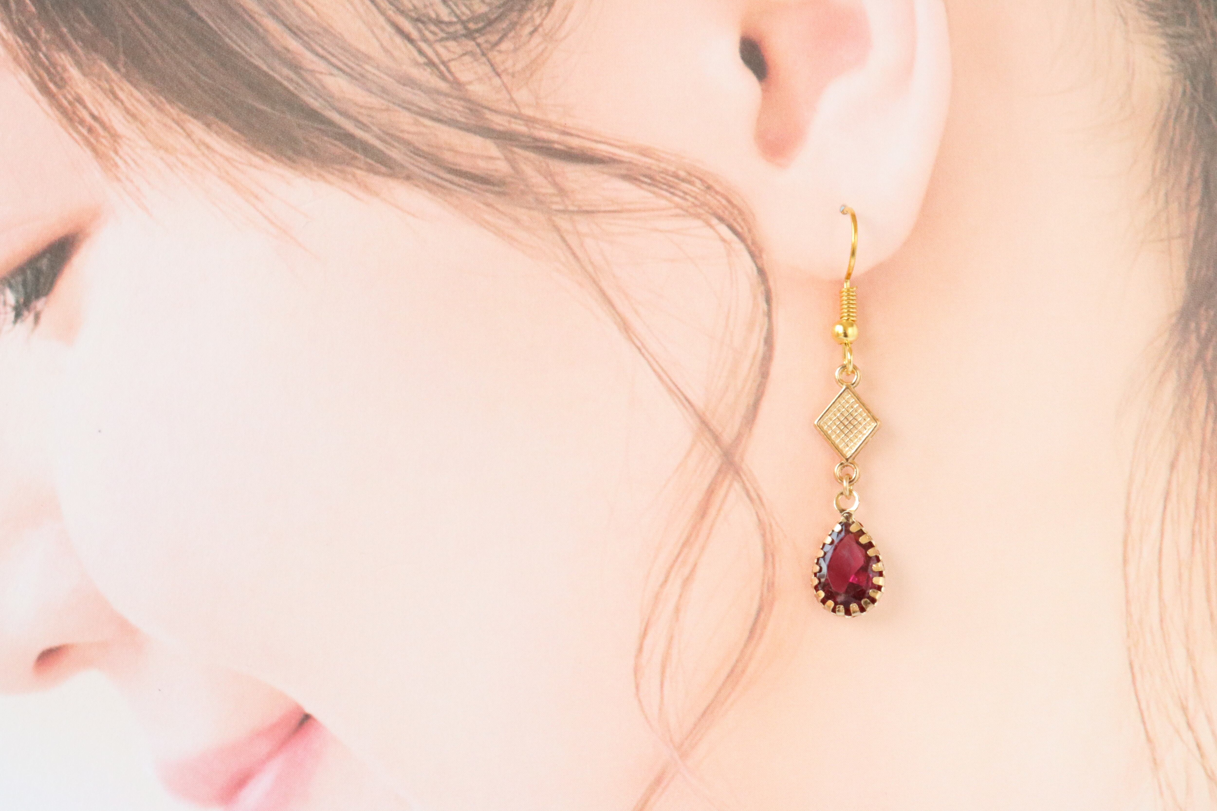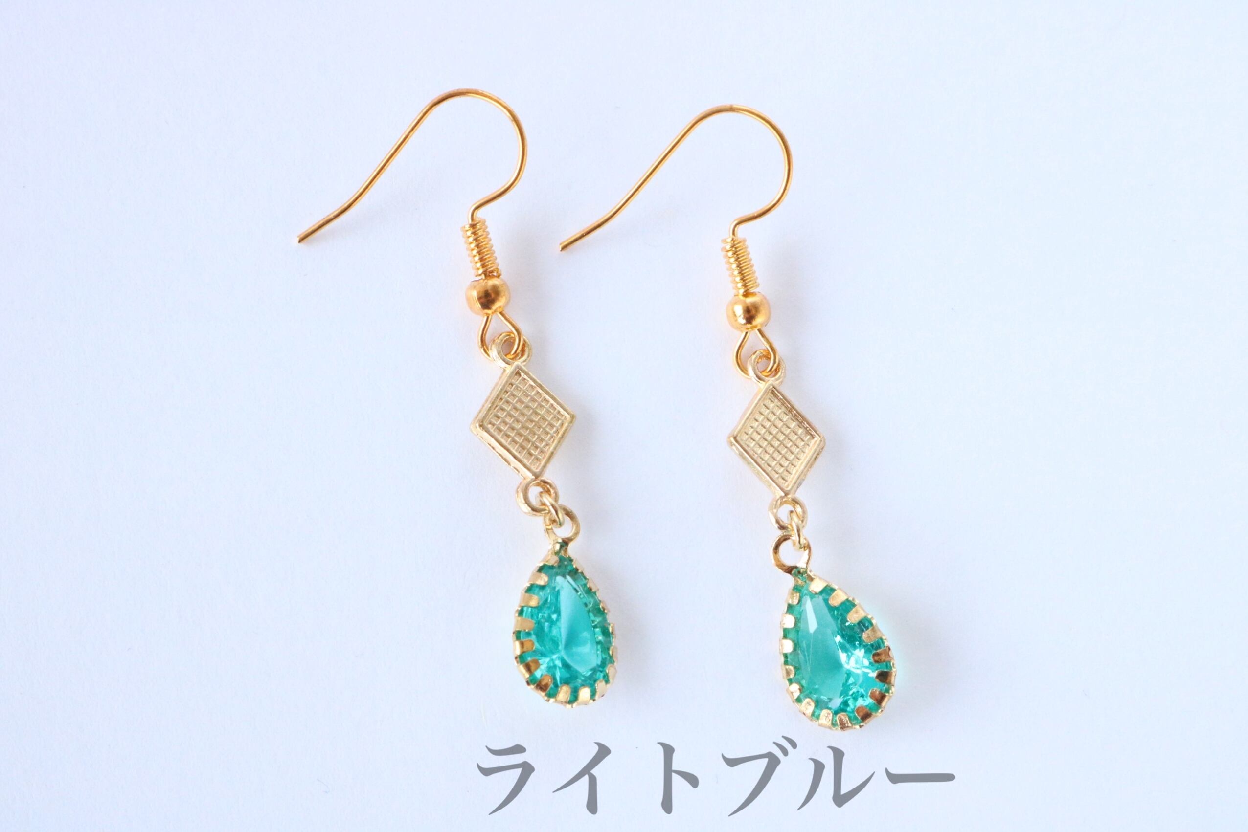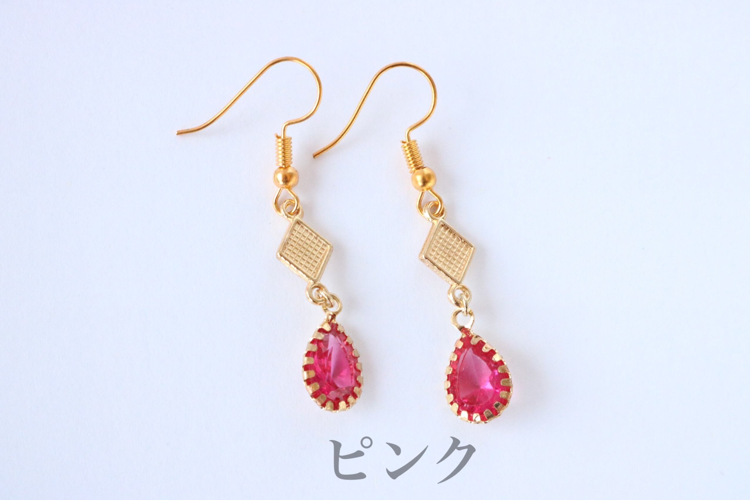 A-17 菱形チャームしずくストーン フックピアス