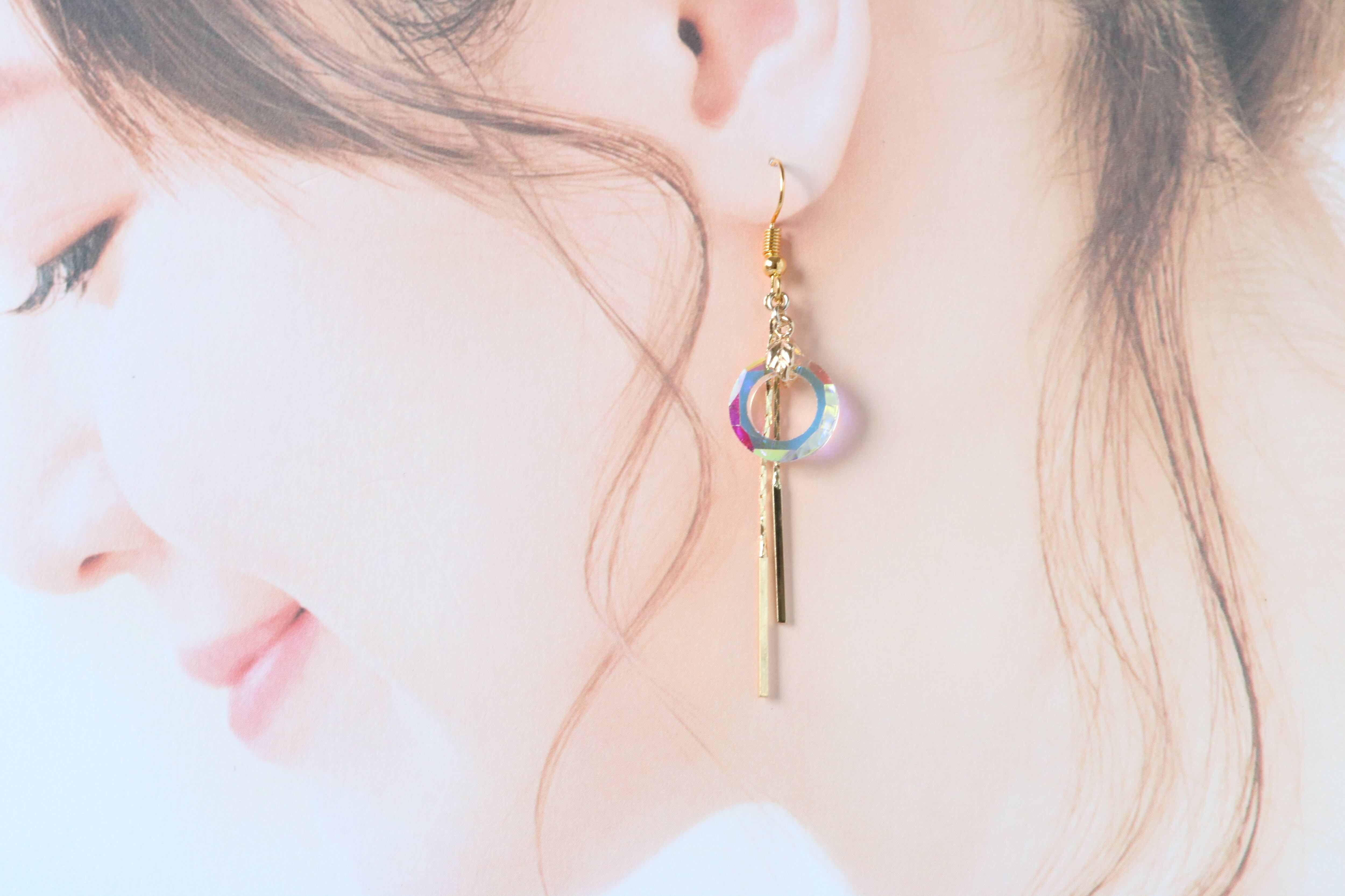 A-24 ガラスリングチャーム×デザインチェーン フックピアス
