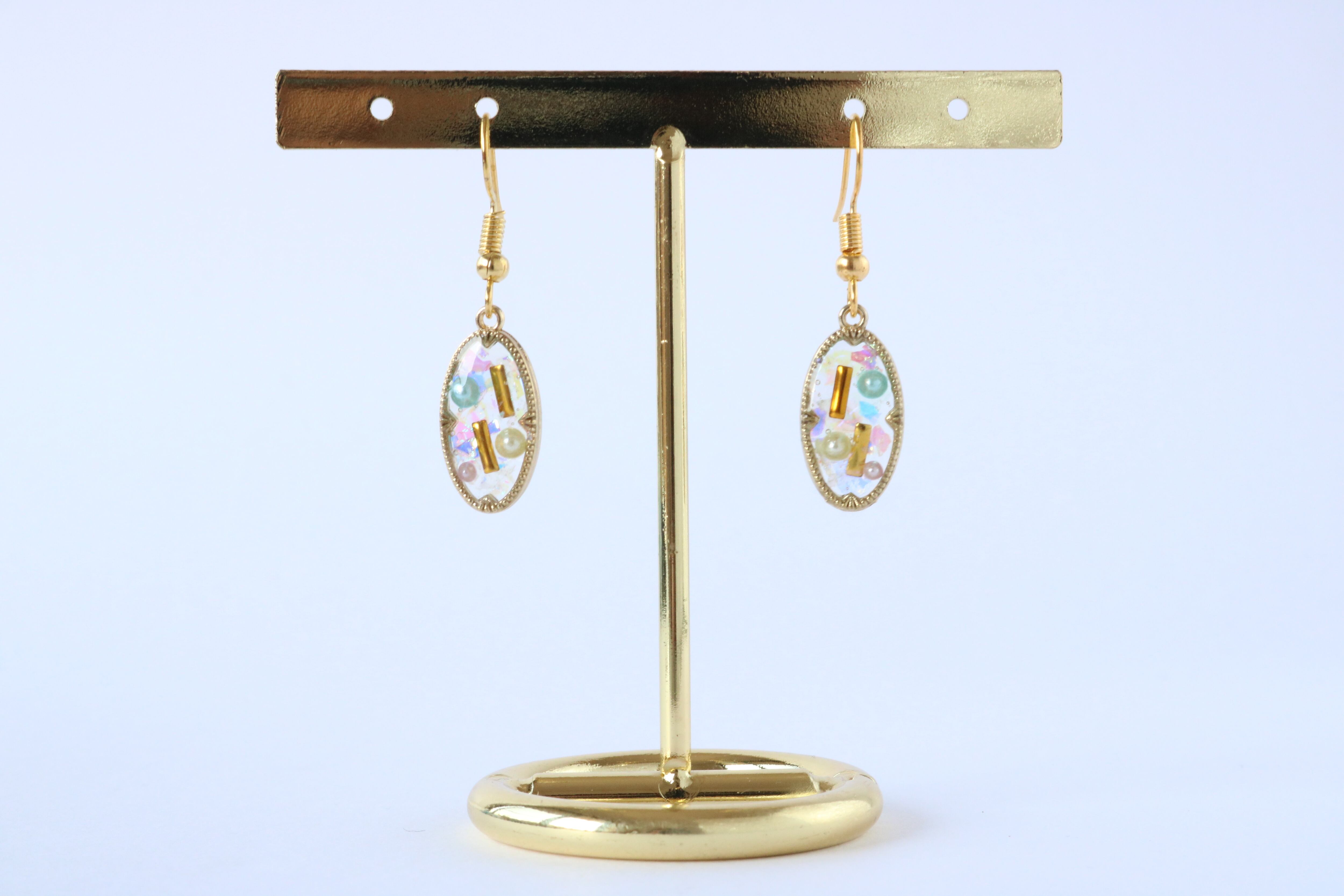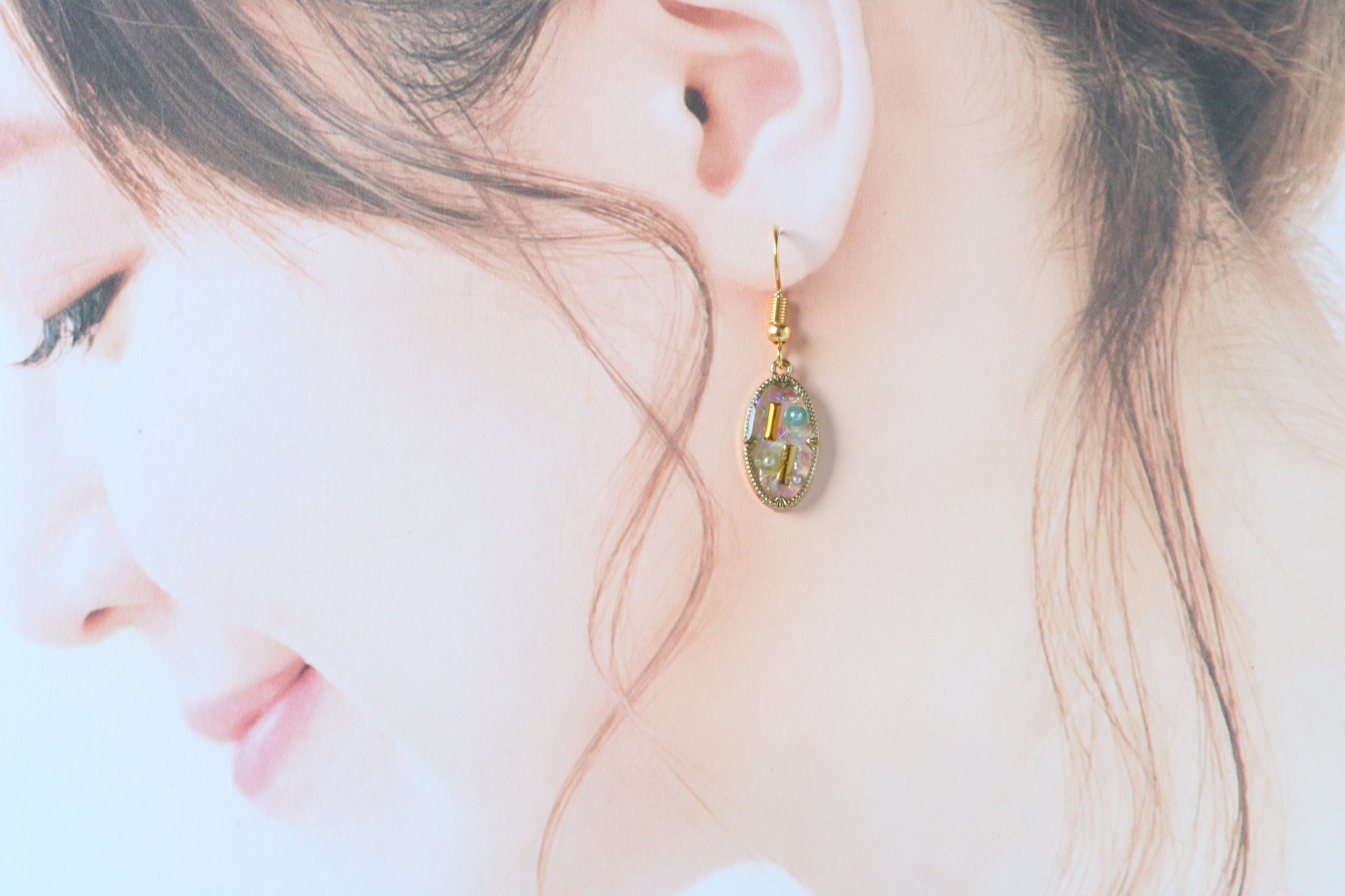 小さめの円形チャームにレジンで固めた可愛らしいゴールドピアスです。♪:*°