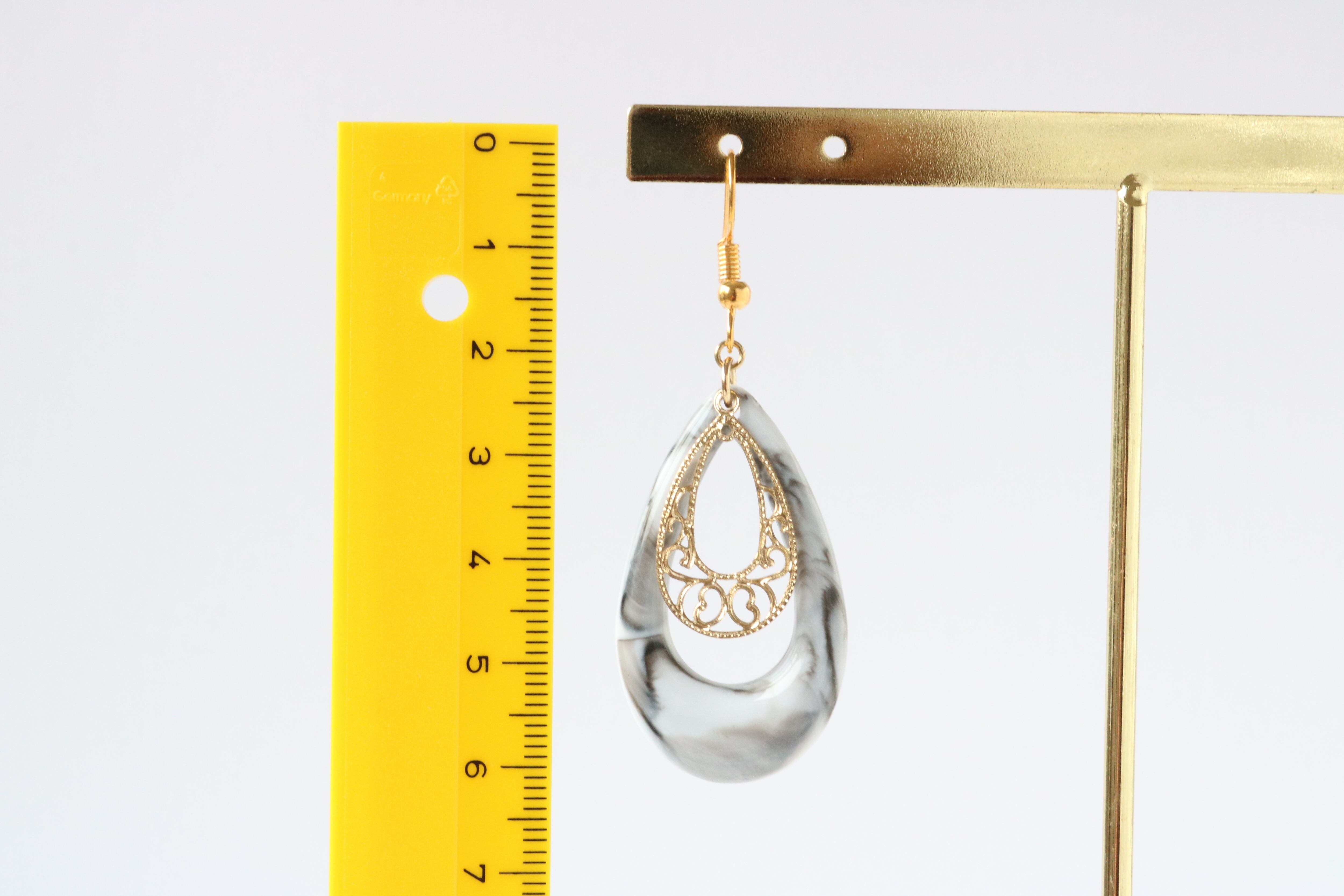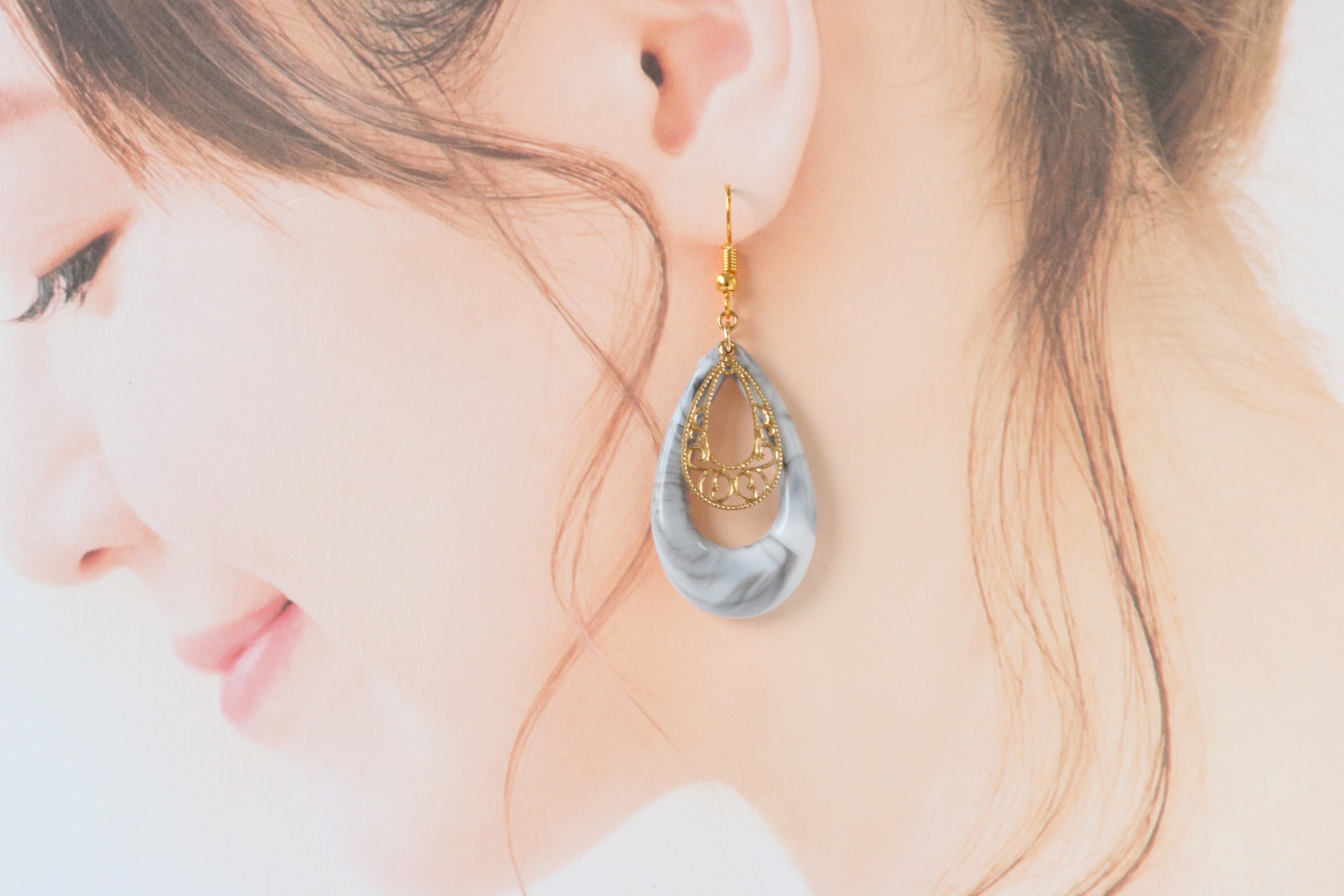 A-26 マーブル雫チャーム×透かしパーツ フックピアス