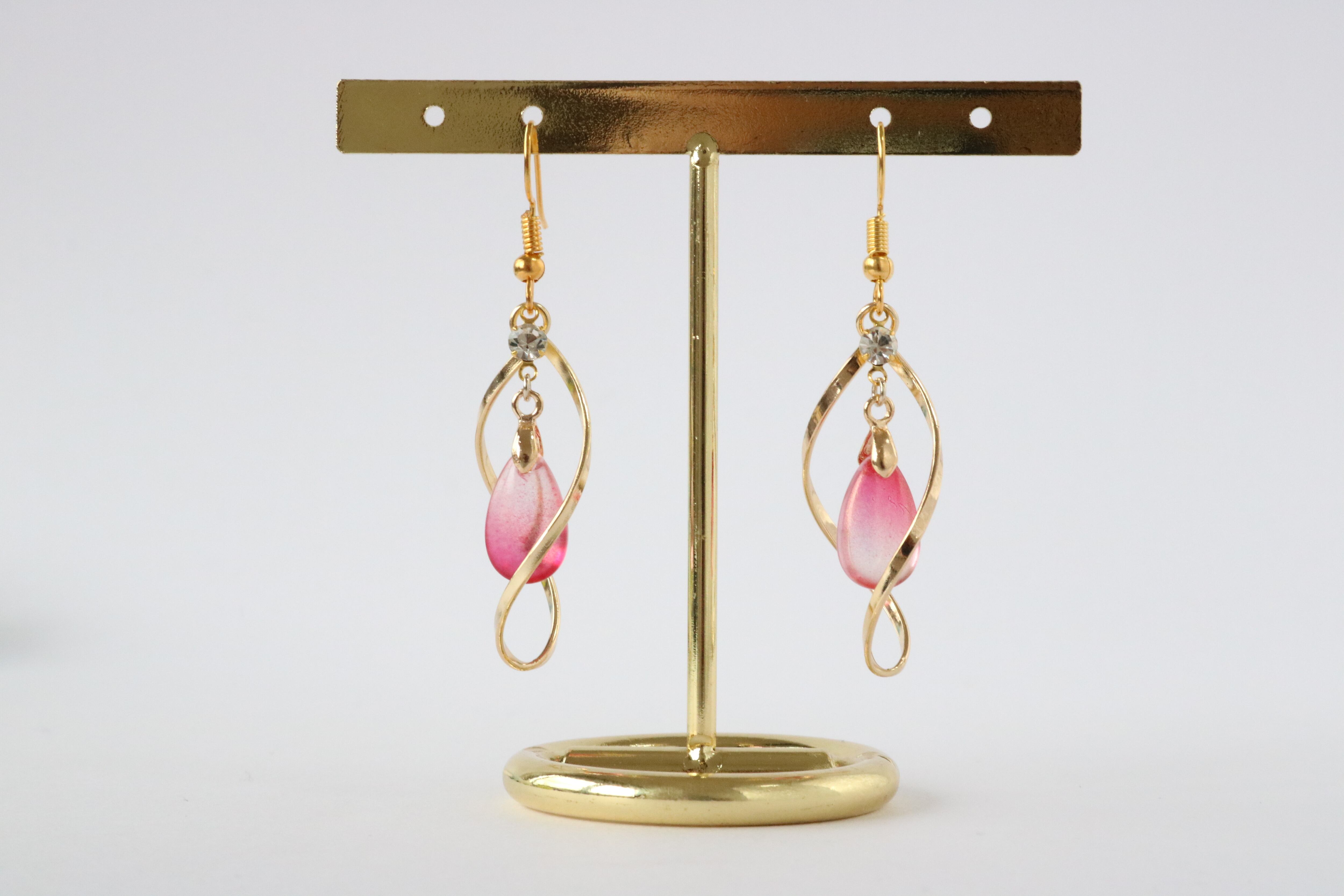 上品なひねりチャームに、透明感のあるカラーのガラスビーズがアクセントになった高級感のあるゴールドピアスです。♪:*°