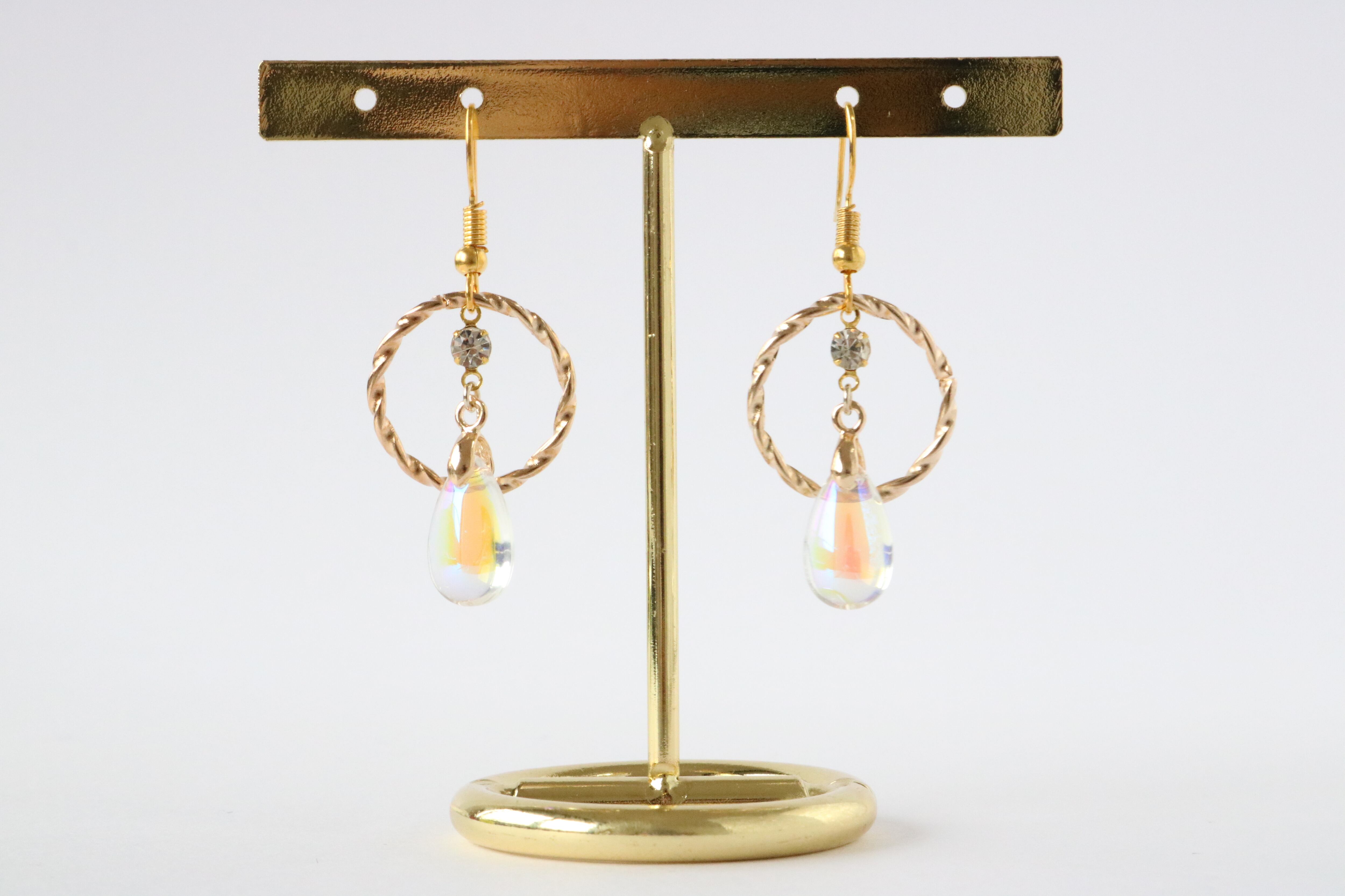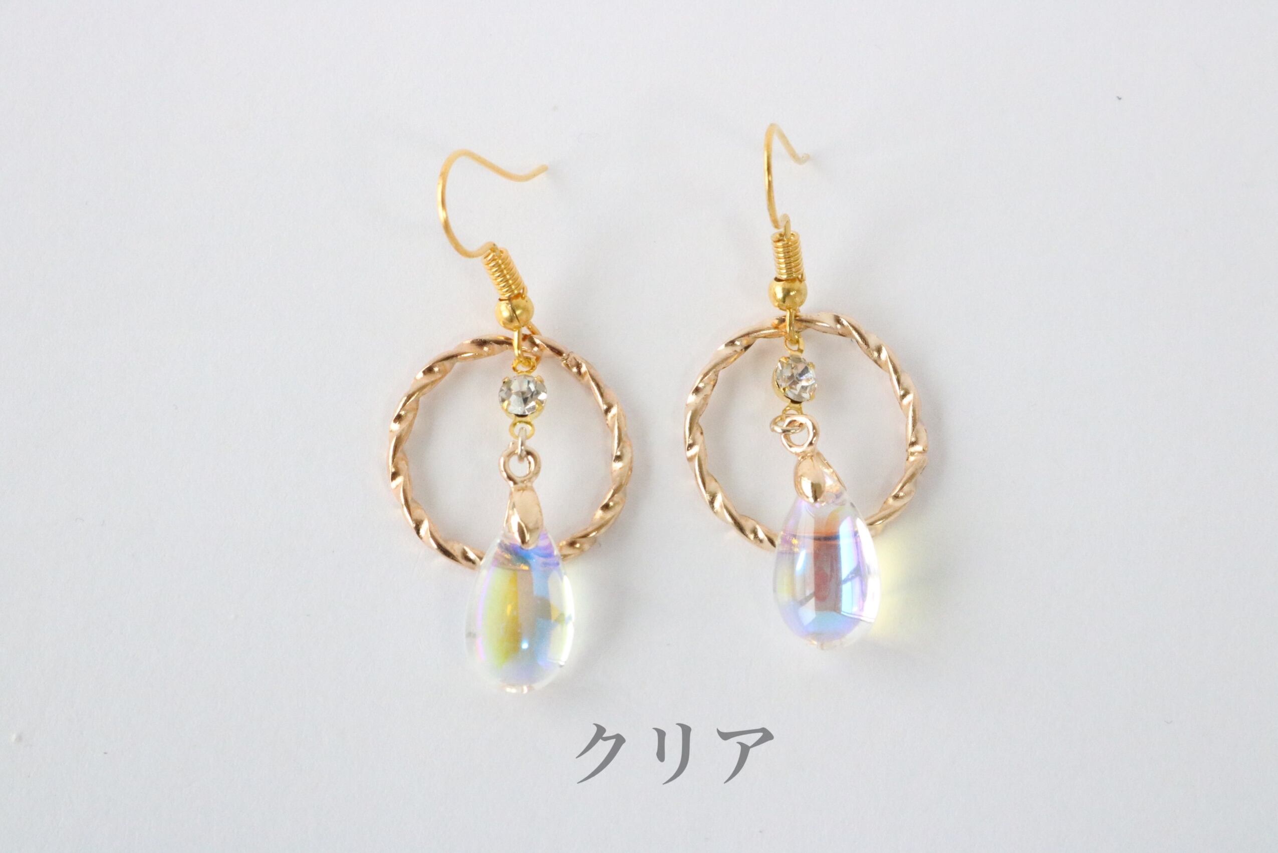 A-28 ゴールドリング×しずくガラスビーズ フックピアス