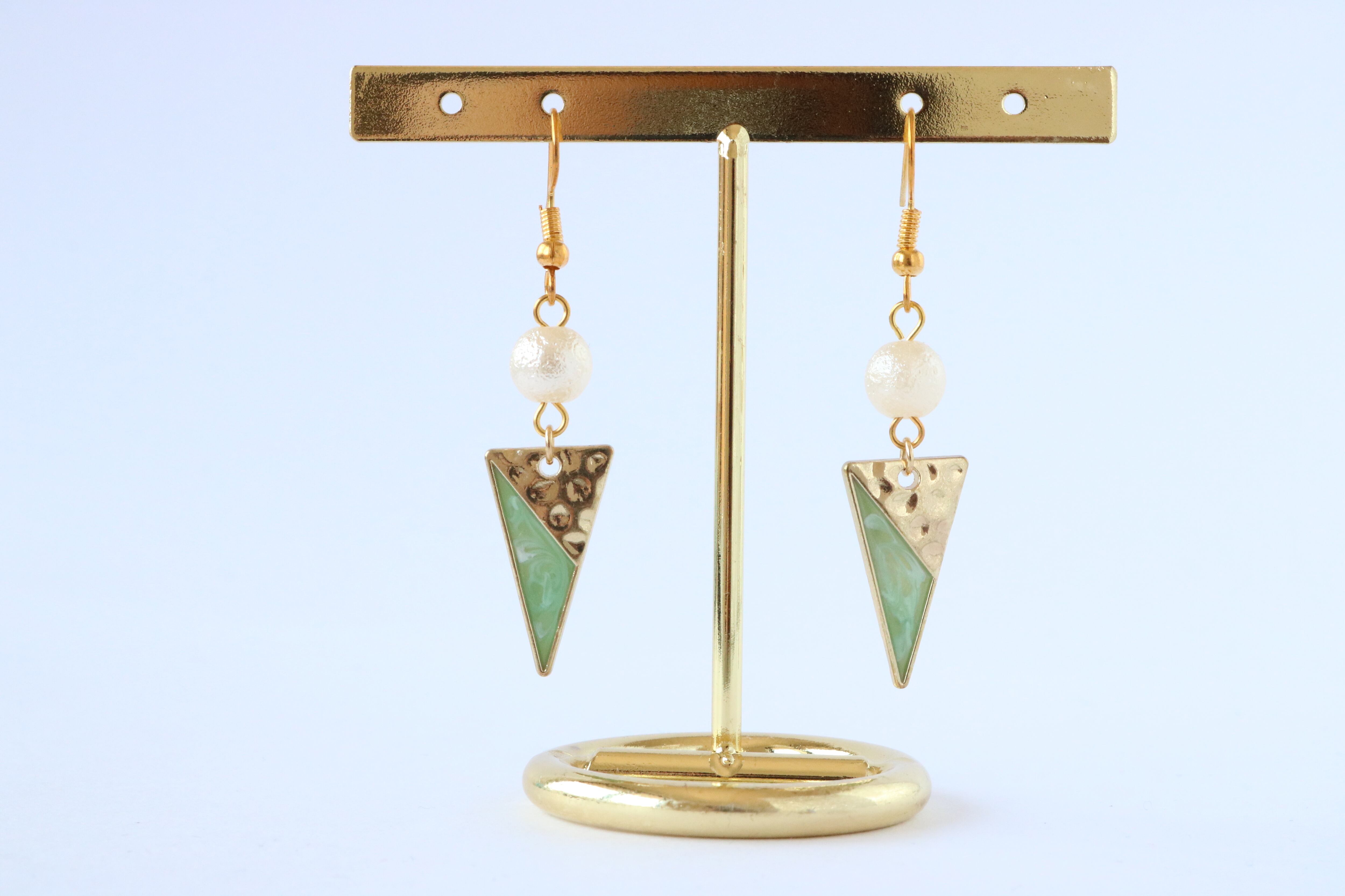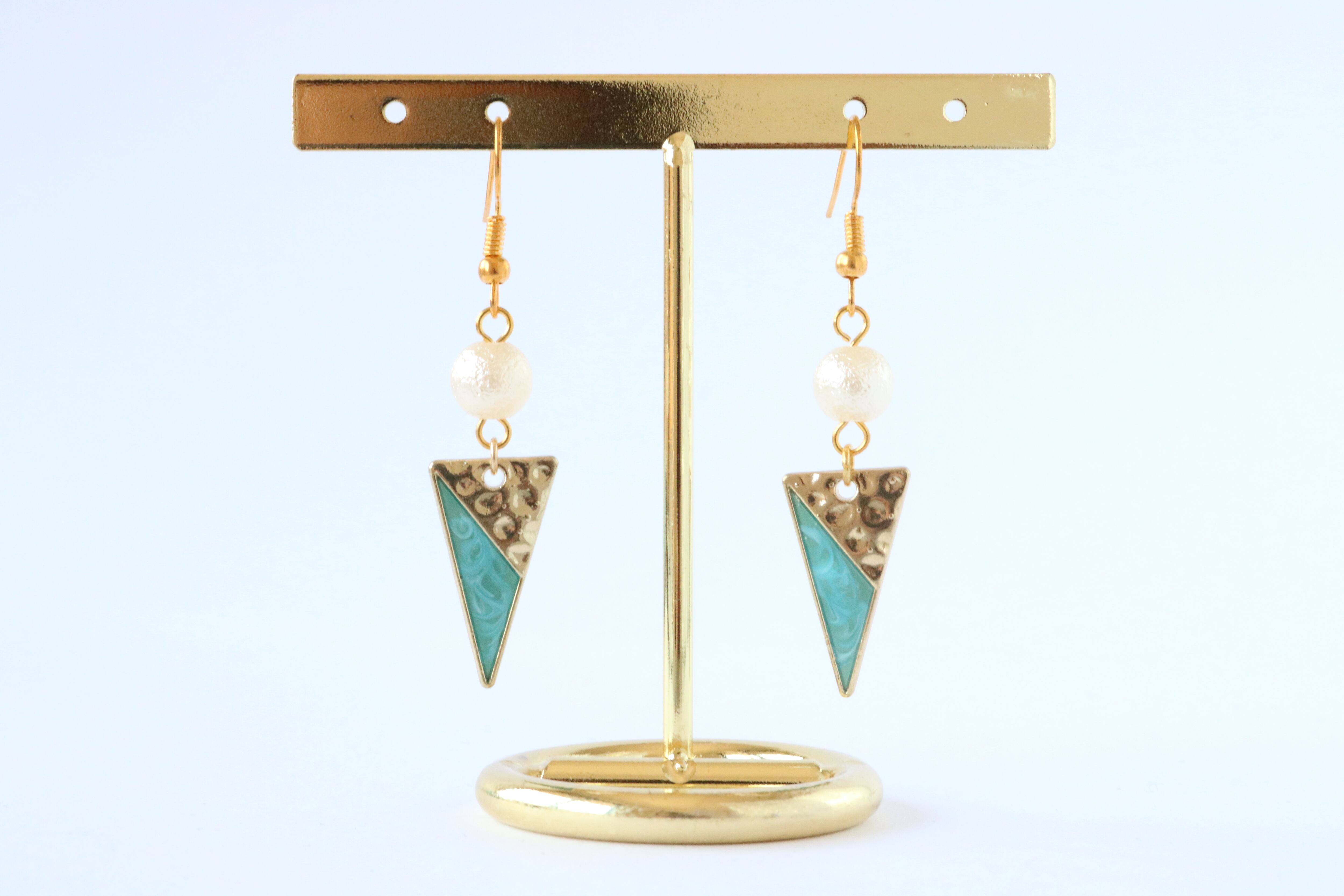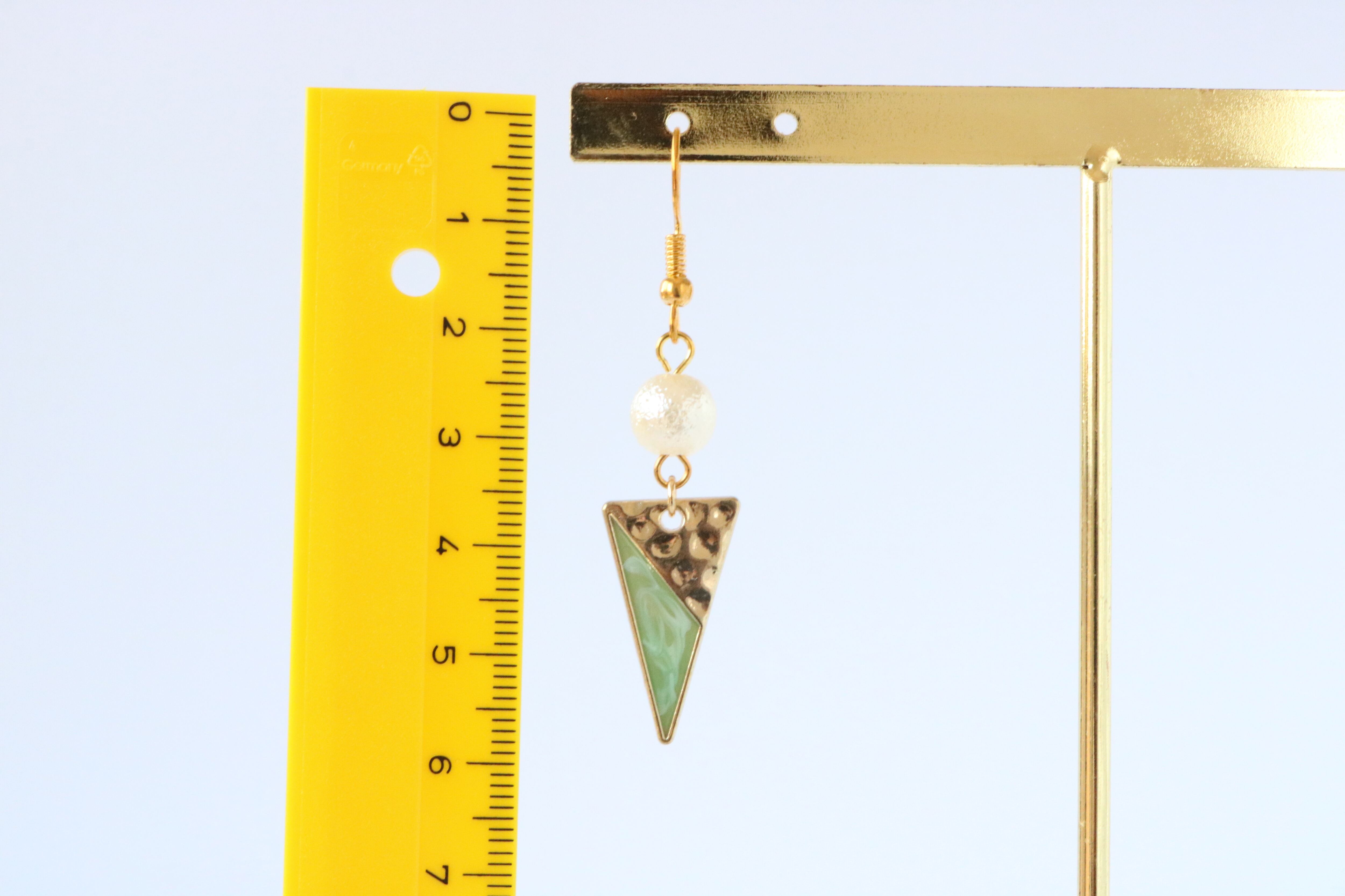 長三角形エポチャームとコットンパールが目を引くピアスです❤︎*。