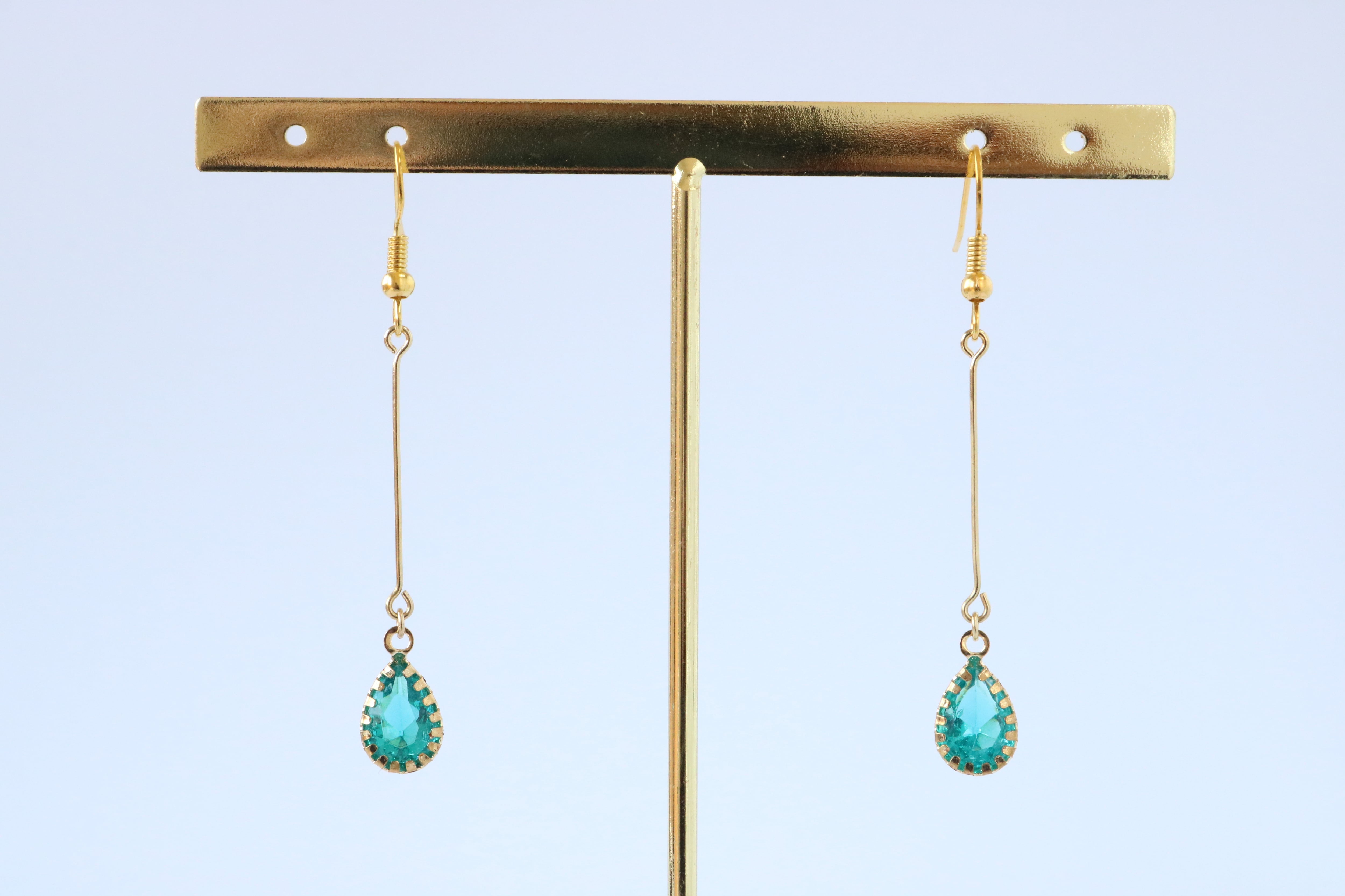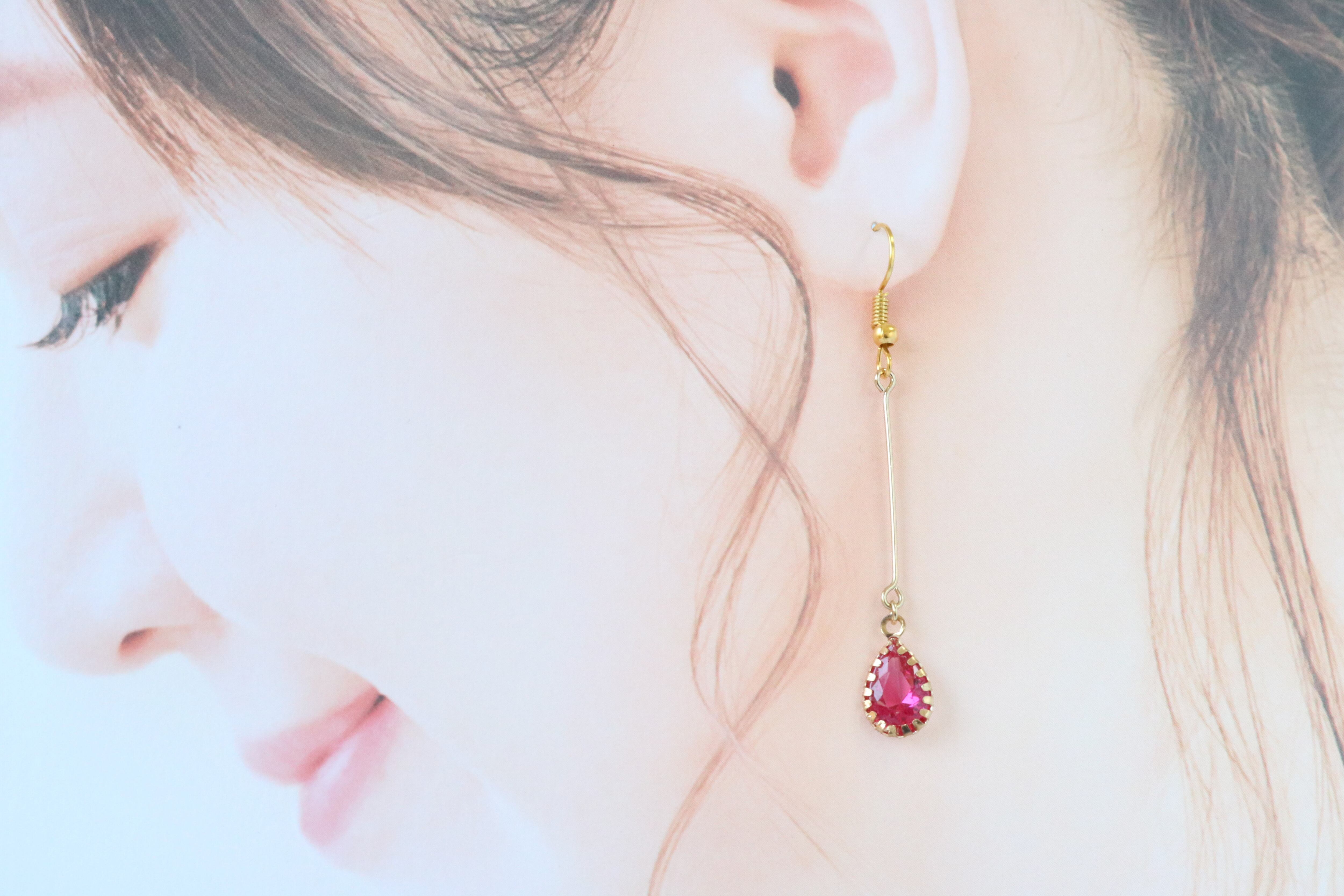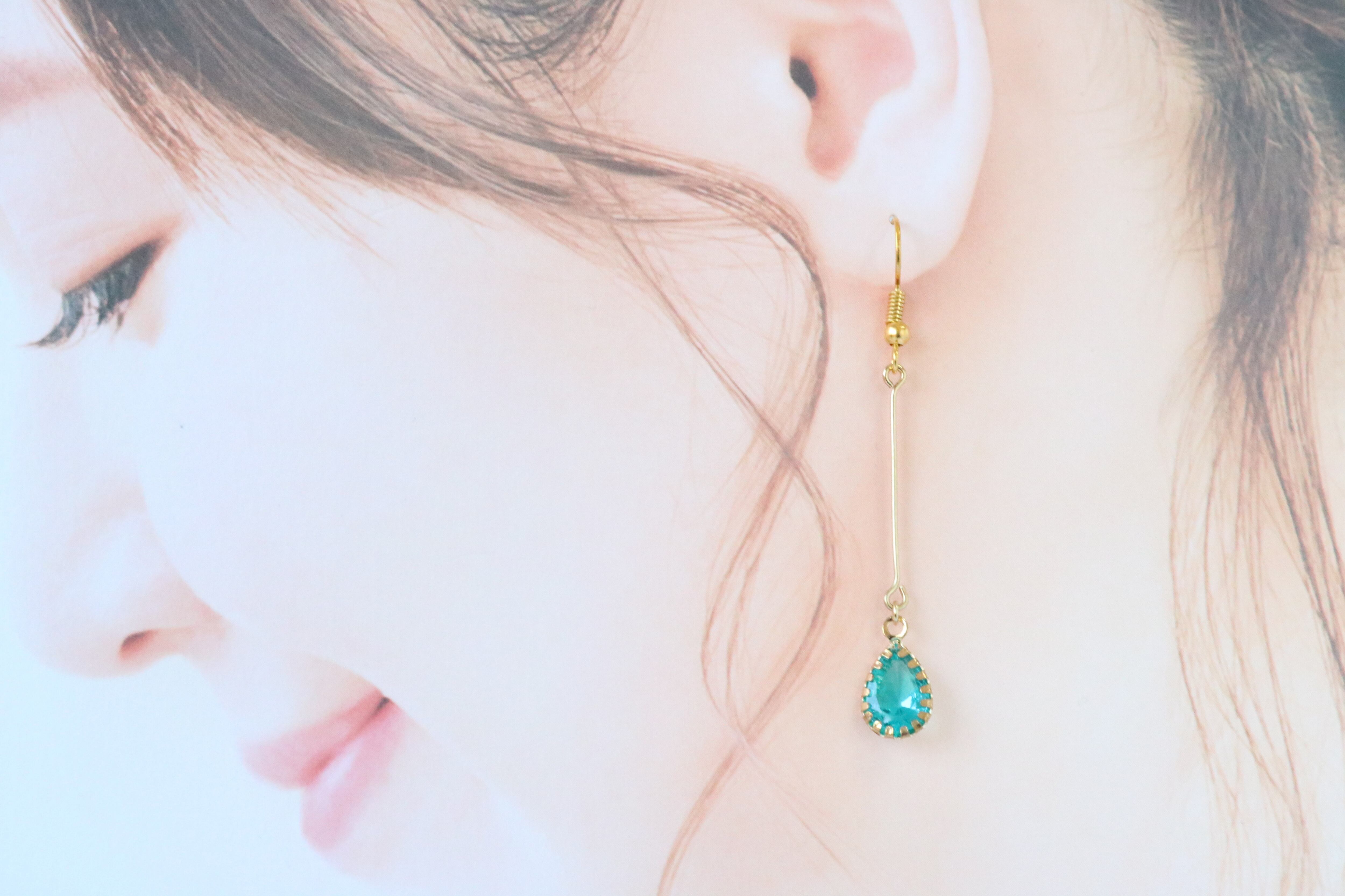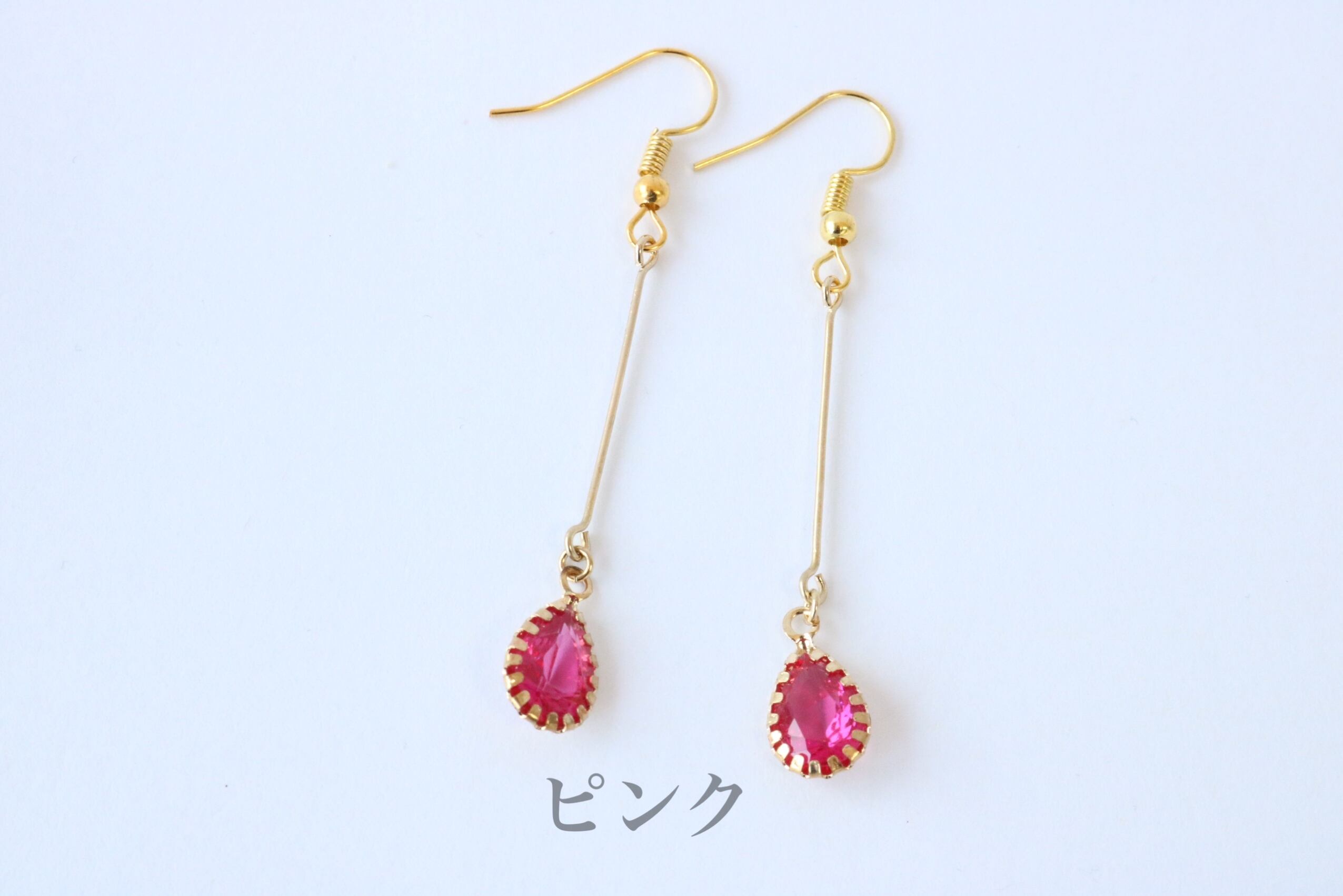 ガラスストーンがゆらゆら揺れるシンプルで上品なゴールドピアスです。♪:*°