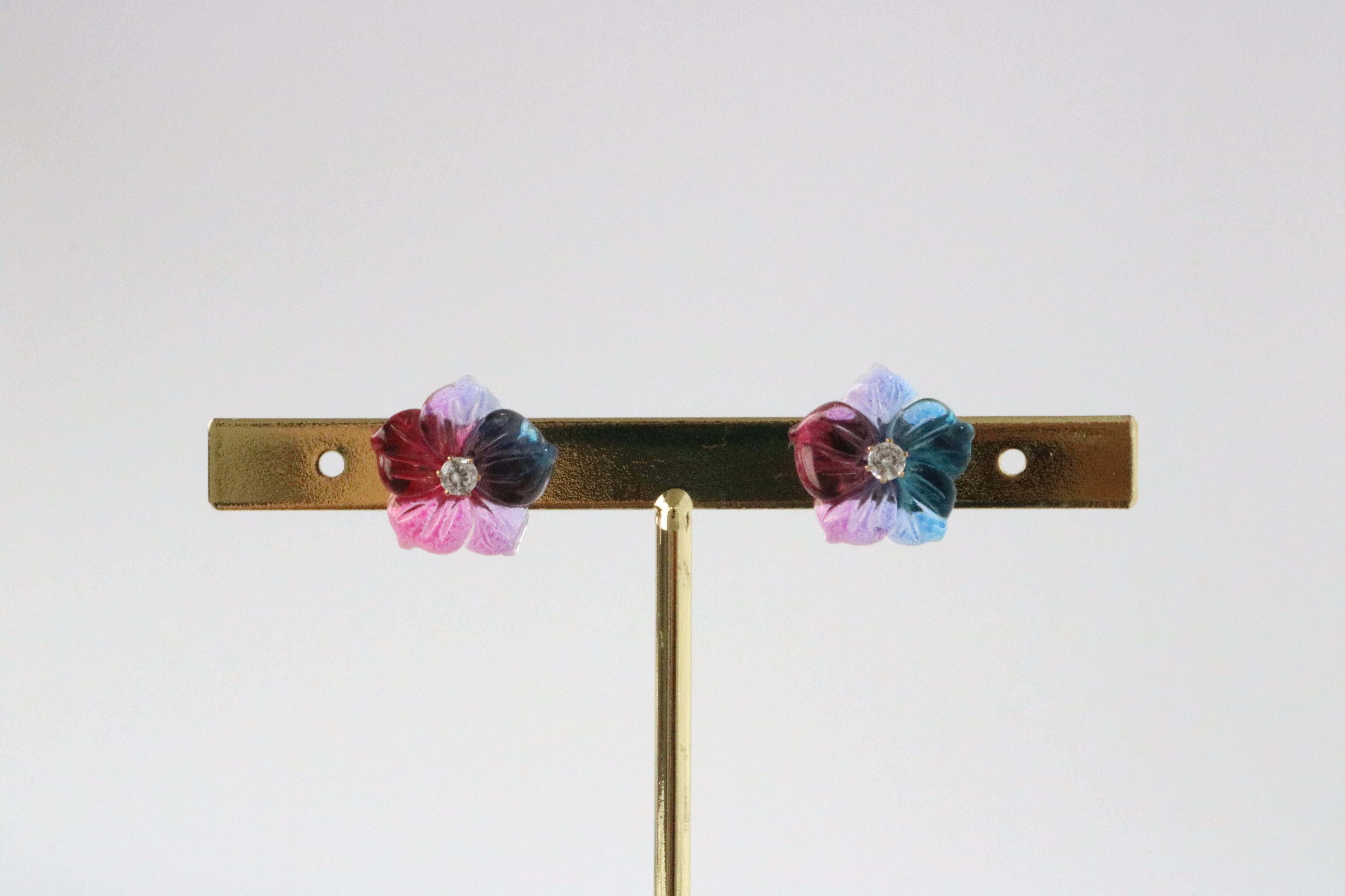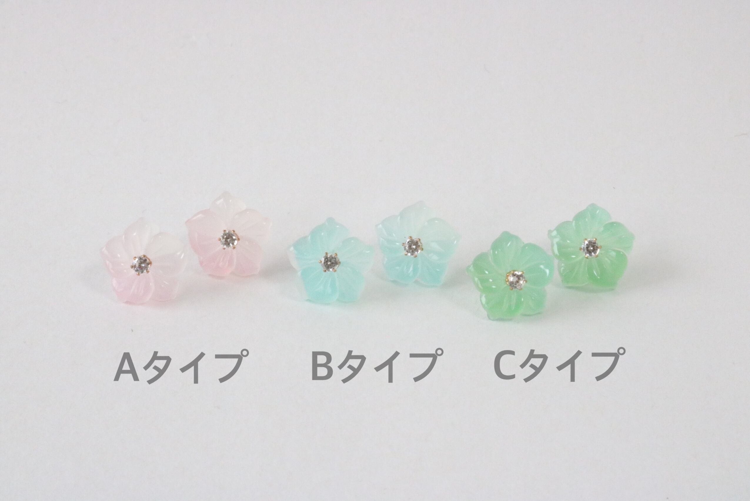 春夏に向けた爽やかな色合いのフラワーが目を引く大人可愛いポストピアスです。♪:*°