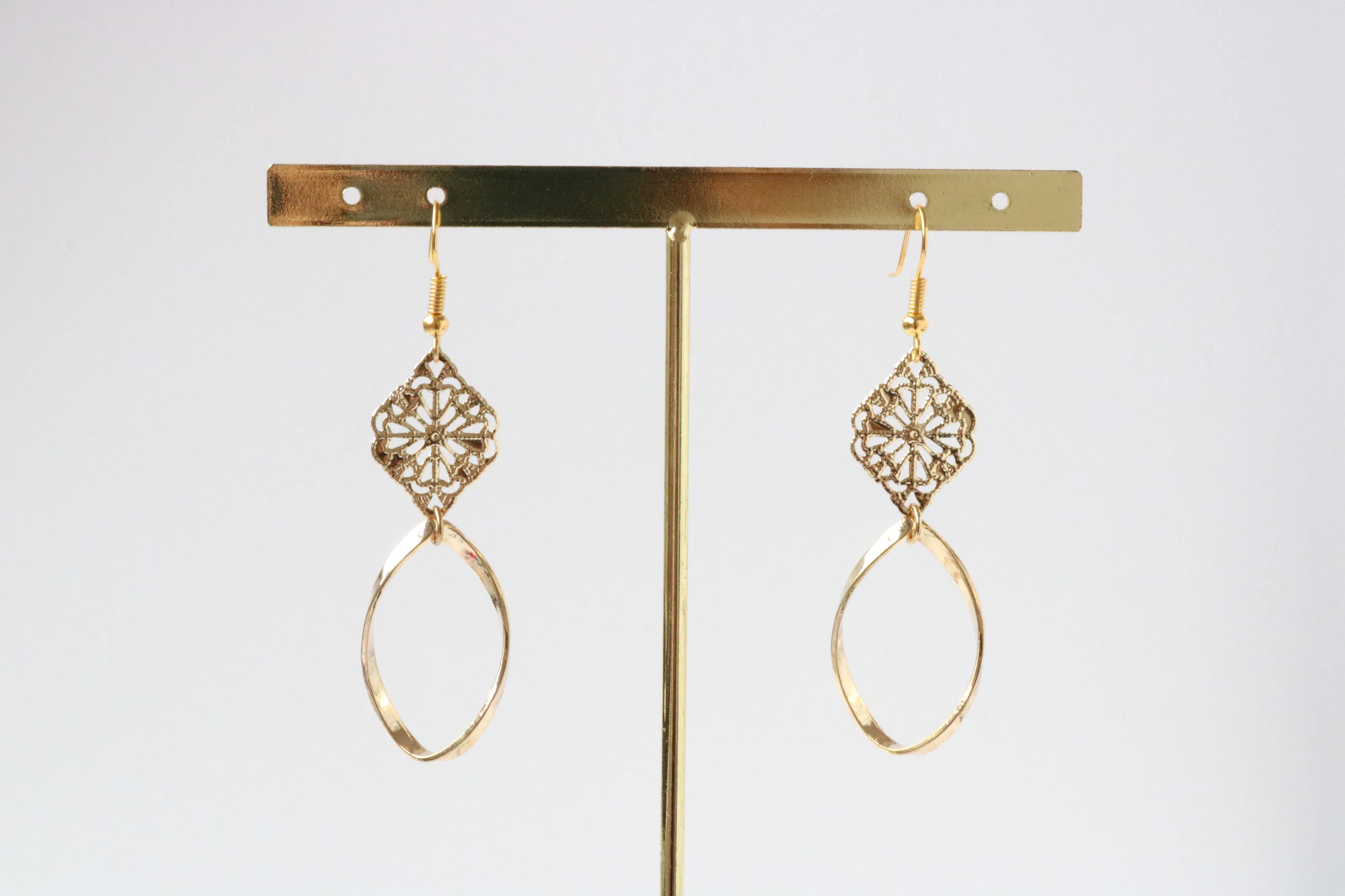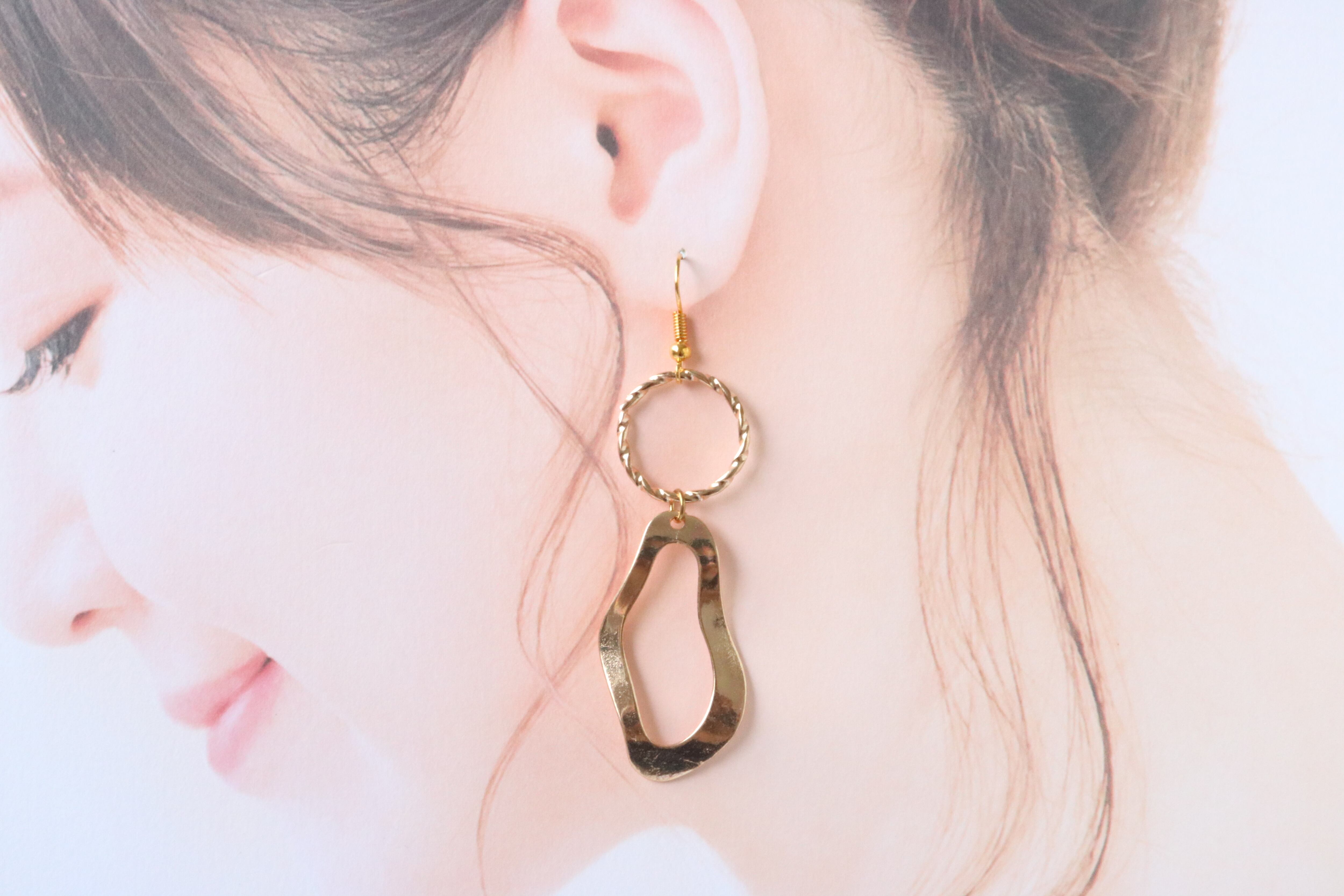 上品なゴールドチャームを組み合わせた大ぶりの大人綺麗めゴールドピアスです。♪:*°